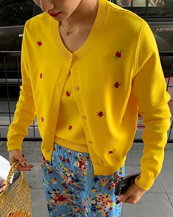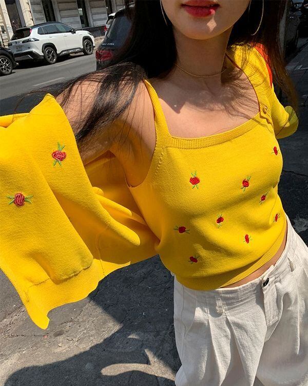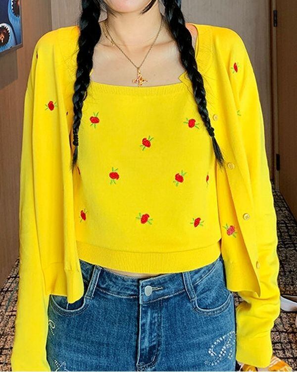 Rose Embroidered Cardigan / Sleeveless Top V0473 ju