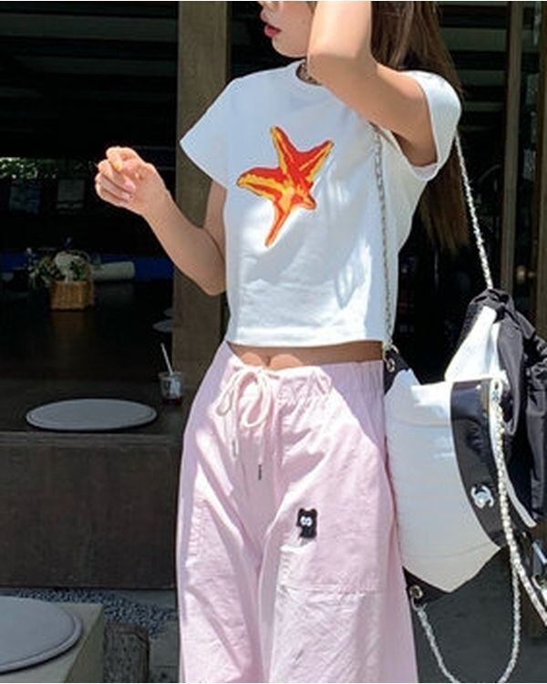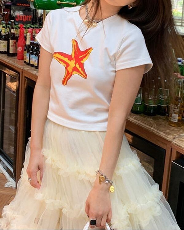 Starfish Print T-shirt V0477 ju