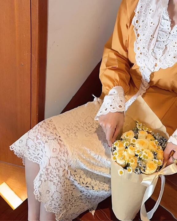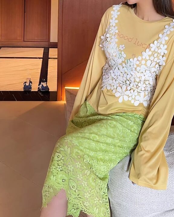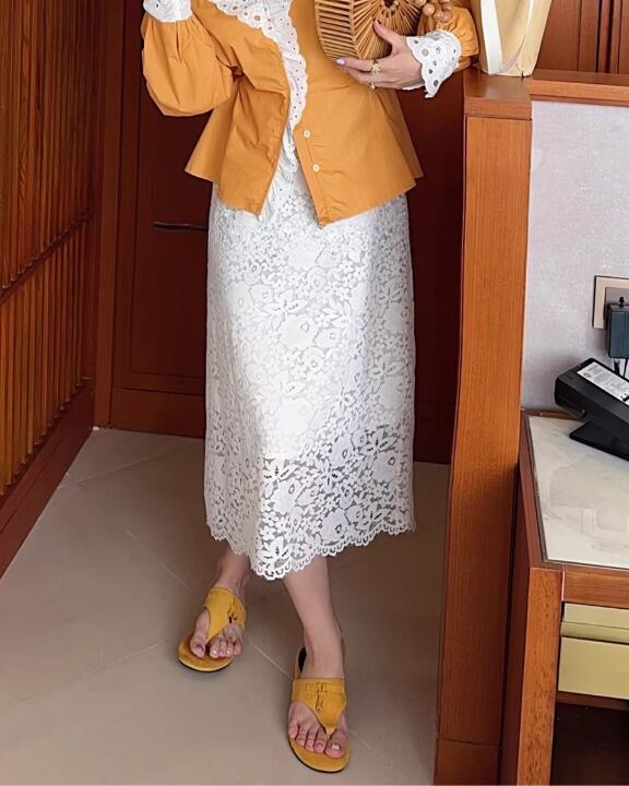 Flower Garden Guipure Lace Pencil Skirt V0382 sh