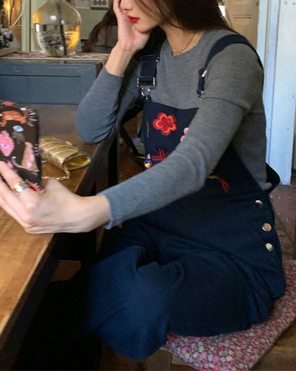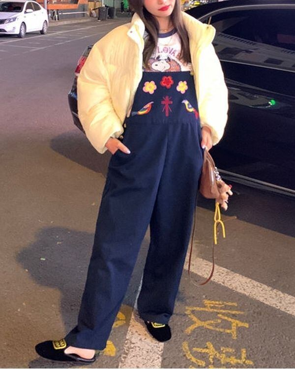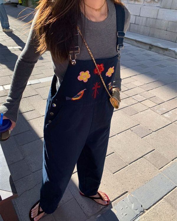 Embroidered Denim Overall V0484 ju