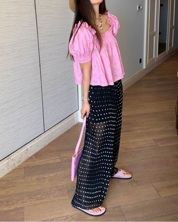 Sheer Dot Pleats Pants V0486 ju