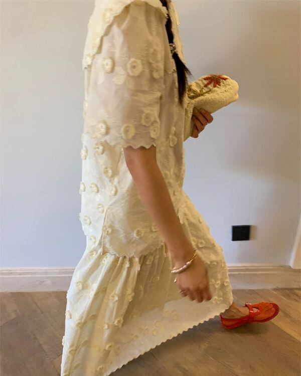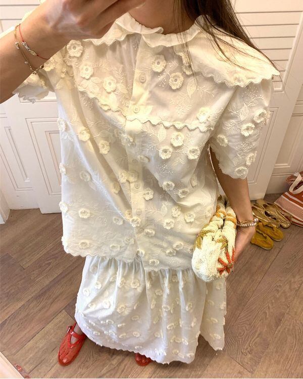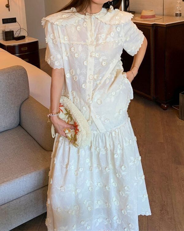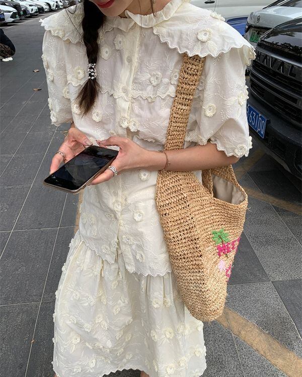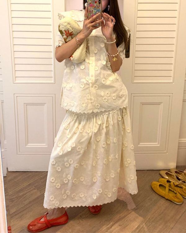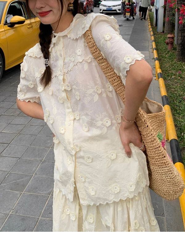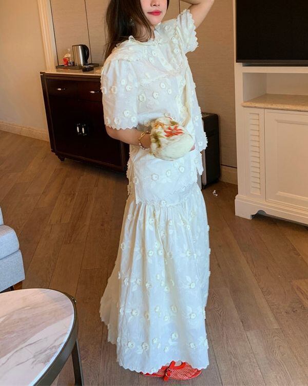 Floral Embroidered Blouse / Skirt V0489 ju