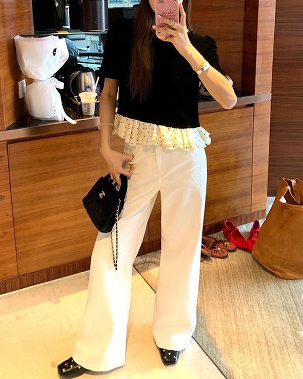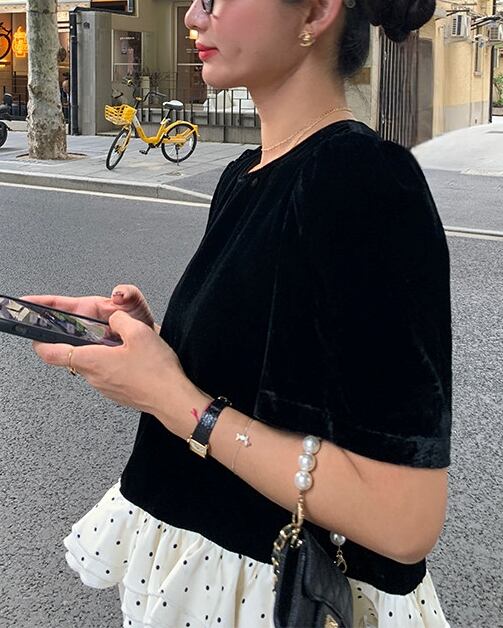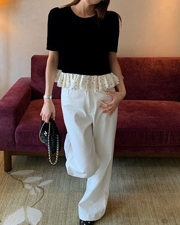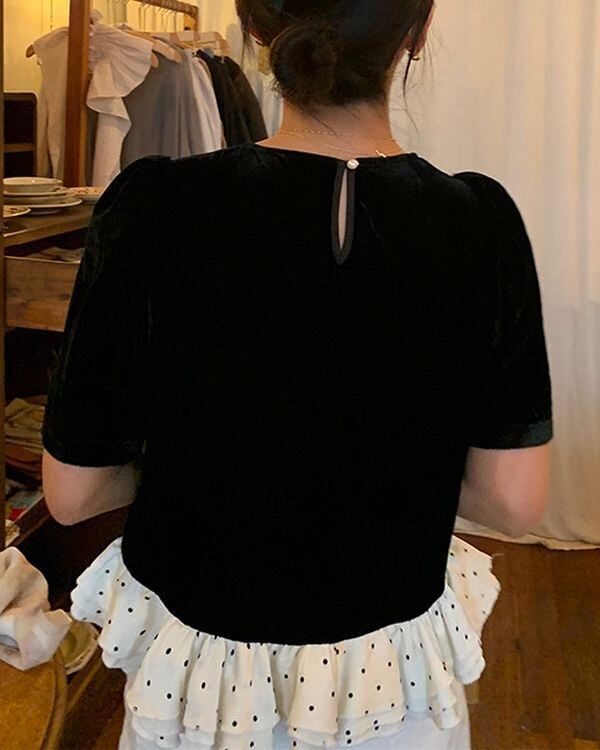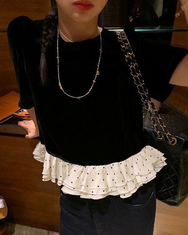 Dot Frill Hem Top V0495 ju