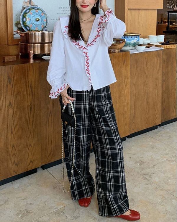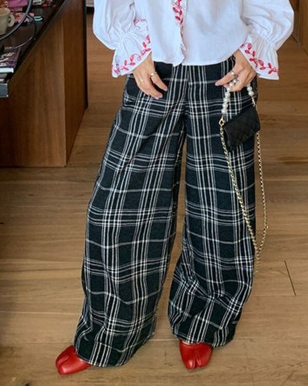 Check Wide Pants V0570 ju