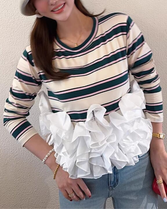 Voluminous Ruffle Striped Cut-and-Sewn V0385 sh