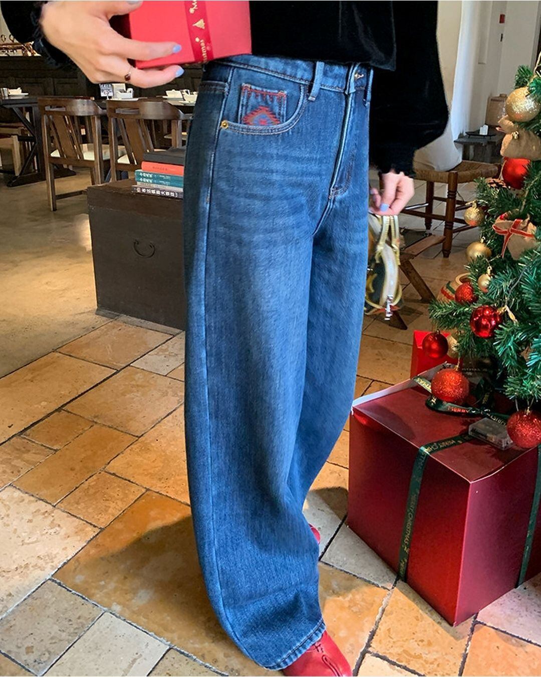 Tribal Embroidered Pocket Jeans V0504 ju