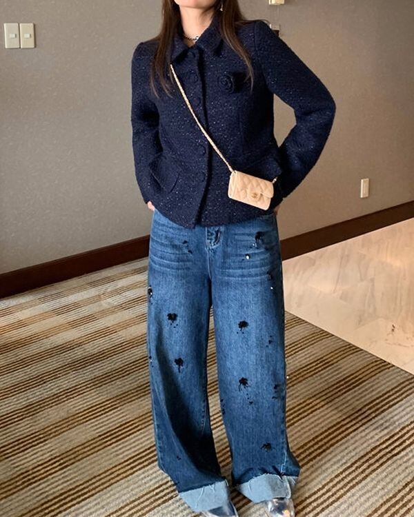 Sequin Flower Jeans V0517 ju