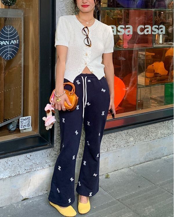 Ribbon Embroidered Drawstring Pants V0521 ju