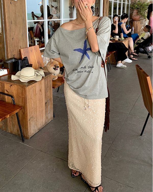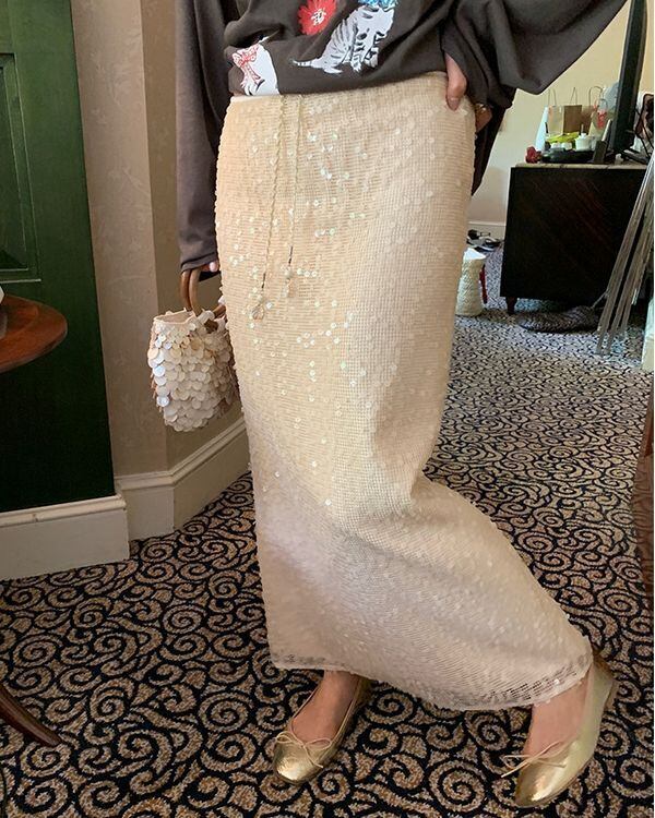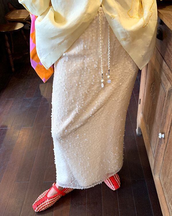 Beads Strap Sequin Mesh Skirt V0528 ju