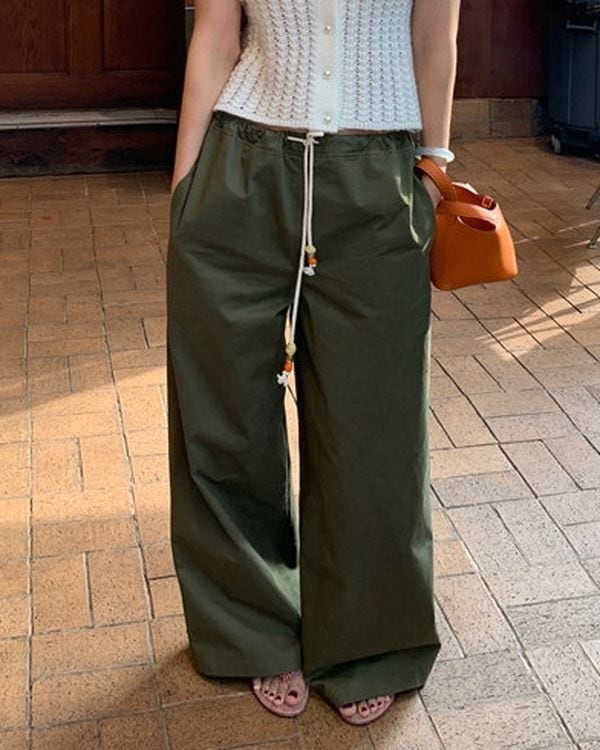 Beads Strap Wide Pants V0539 ju