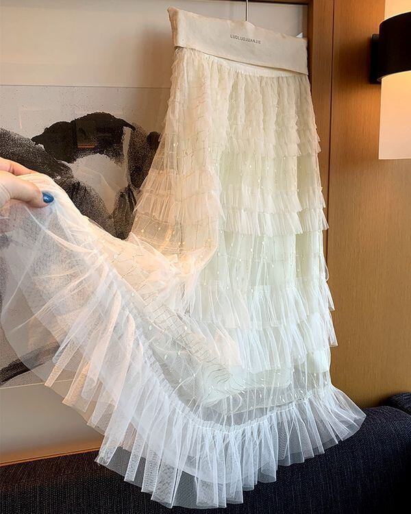 Mesh Tiered Skirt V0554 ju